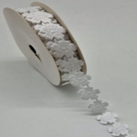 Tato originální dekorační stuha s plastickými květy v bílé barvě dodá vašim kreativním projektům kouzlo a eleganci. Květy jsou jemně vyřezávané a spojené do souvislého pásu, ideální pro zdobení dárků, scrapbookingu, šití, výrobu věnců, svatební dekorace a další kreativní tvoření.