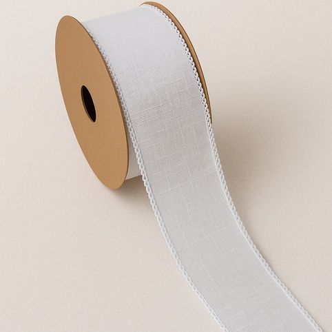 Elegantní bílá stuha s jemnou strukturou a dekorativním okrajem je ideální pro slavnostní balení dárků, tvorbu dekorací, svatební výzdobu i kreativní tvoření. Dodávána na praktické kartonové cívce pro snadnou manipulaci a uskladnění.