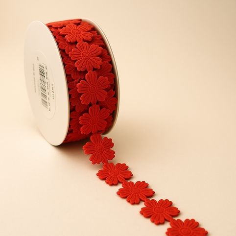 Tato originální dekorační stuha s plastickými květy v červené barvě dodá vašim kreativním projektům kouzlo a eleganci. Květy jsou jemně vyřezávané a spojené do souvislého pásu, ideální pro zdobení dárků, scrapbookingu, šití, výrobu věnců, svatební dekorace a další kreativní tvoření.