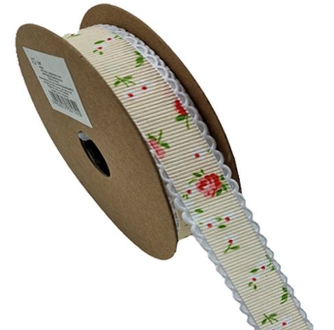 Veselá a romantická dekorační stuha v krémové barvě s potiskem růžiček a jemným bílým lemováním je ideální pro balení dárků, zdobení věnců, tvoření přáníček nebo dekoračních projektů. Díky výraznému květinovému motivu vynikne v každé tvořivé kompozici.