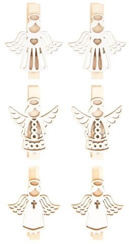 Dekorece Anděl dřevěný 3,5 cm 6 ks, na kolíčku, bílý / 4864
