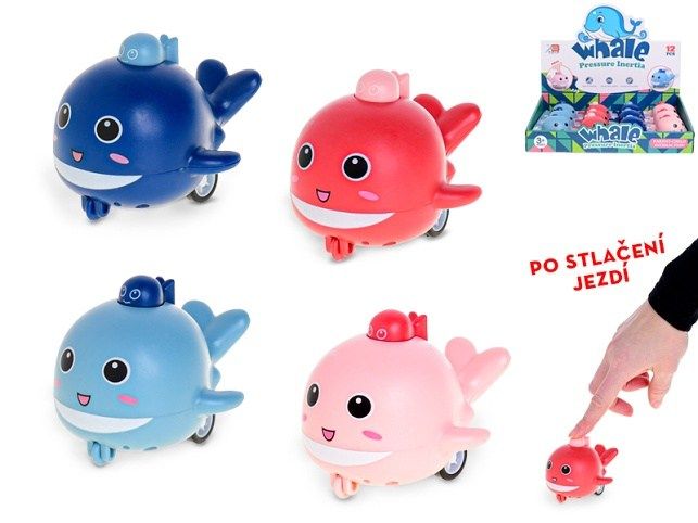 Delfín 8cm po stlačení jezdící 4 barvy