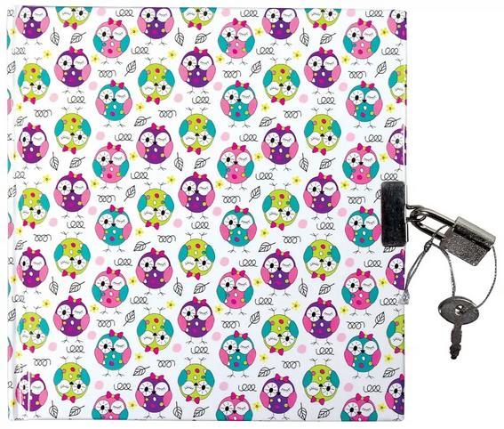 Deníček v krásných pevných deskách s oblíbeným motivem sov se slušivým zámeček uzamykatelný na klíč .