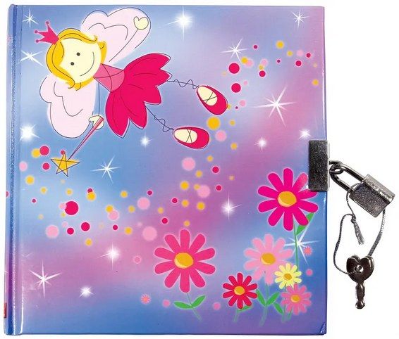 Deníček v krásných pevných deskách s oblíbeným motivem víly se slušivým zámečkem uzamykatelným na klíč .