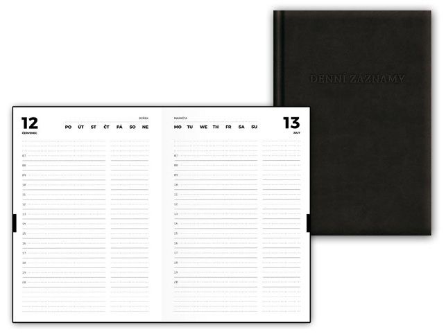 Univerzální denní záznamy - univerzální diář, který je vhodný do práce, do školy nebo jen tak pro své vlastní využití - Potřebujete si vést záznamy o každém dni? Tento diář má na každé stránce jeden den, do kterého lze zapsat všechny skutečnosti, plánované události a akce. Diář můžete používat i v dalších letech, neboť není označený žádným rokem. V DIÁŘI NAJDETE: - označení každého dne - dny v týdnu - jmeniny - prostor pro poznámky (na konci diáře) - čas - státní svátky BARVA: černá Uvedená cena je za 1 ks.