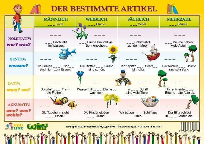 Naučná tabulka DER BESTIMMTE ARTIKEL je určen především k snadnému zvládnutí německých určitých členů, ale i k zopakování učiva a jeho procvičování.
