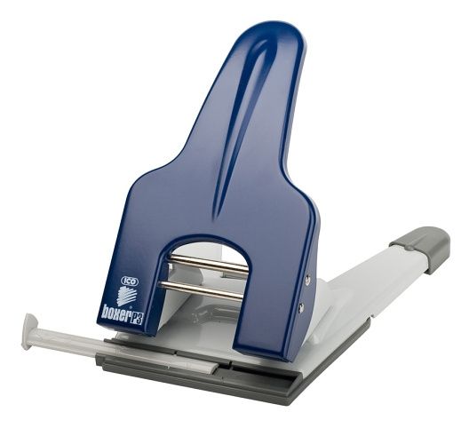 Velká kovová děrovačka na 45 listů pro každodenní používání. Ukazatel středu děrování. Posuvné pravítko pro děrování formátu DIN. Plastové dno základny zabraňuje poškození nábytku.