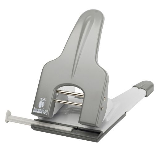 Velká kovová děrovačka na 45 listů pro každodenní používání. Ukazatel středu děrování. Posuvné pravítko pro děrování formátu DIN. Plastové dno základny zabraňuje poškození nábytku.