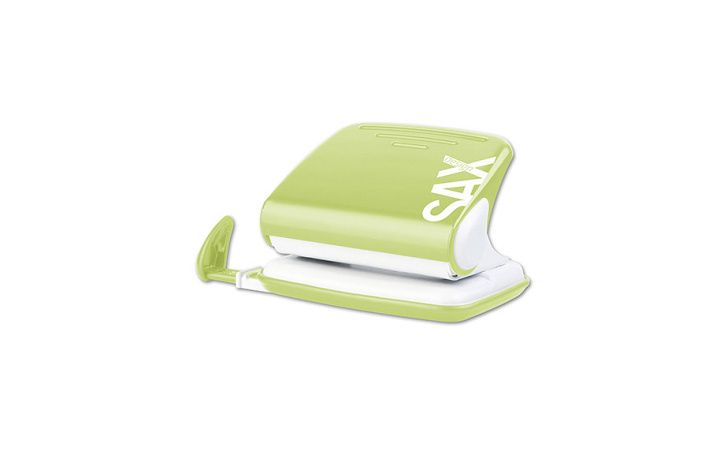Kovová děrovačka s elegantními plastovými doplňky a ergonomickou úchopovou částí. Ukazatel středu děrování, posuvné pravítko pro děrování formátu DIN. Kapacita děrování 15 listů.