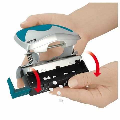 Exkluzivní ergonomická děrovačka s posuvným příložníkem.