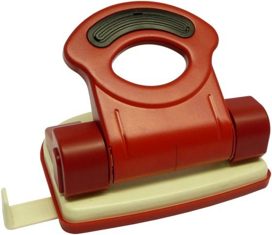 Moderní design, celokovová konstrukce s polstrovanou rukojetí, děrovačka malé velikosti s pohledovou ryskou, plastový příložník, snímatelné pouzdro na odpad. kapacita: 13 listů průměr děr: 5,5 mm rozteč děr: 80 mm rozměry: 100 x 90 mm