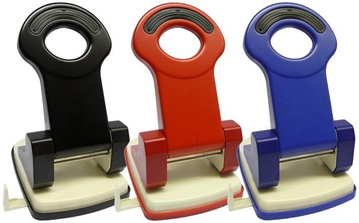 Moderní design, celokovová konstrukce s polstrovanou rukojetí, výkonná děrovačka s pohledovou ryskou, uzamykatelná páka pro snadné skladování, plastový příložník, snímatelné pouzdro na odpad. kapacita: 40 listů průměr děr: 5,5 mm rozteč děr: 80 mm rozměry: 110 x 175 mm