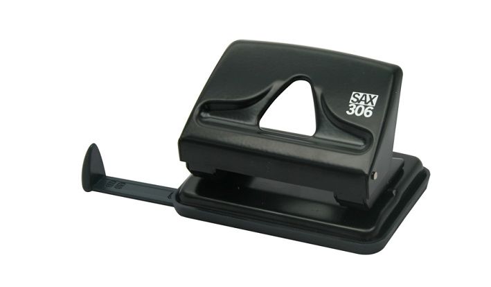 Celokovová střední kancelářská děrovačka s příložníkem. Kapacita děrování 20 listů. Rozteč děr 80mm. Plastové dno základny zabraňuje poškození nábytku.