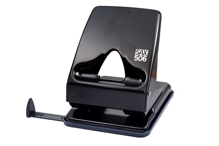 Celokovová velkokapacitní děrovačka s příložníkem. Kapacita děrování 40 listů. Rozteč děr 80mm. Plastové dno základny zabraňuje poškození nábytku.