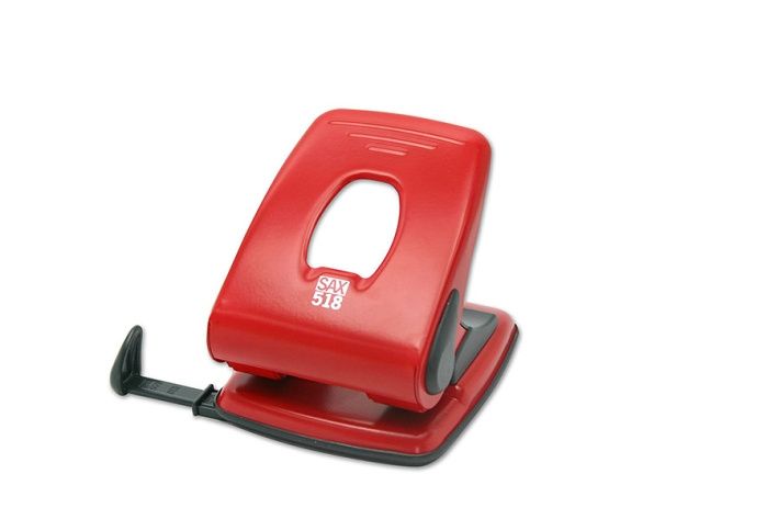 Kovová děrovačka na 40 listů s ergonomickou úchopovou částí. Vhodná pro každodenní používání. Ukazatel středu děrování. Posuvné pravítko pro děrování formátu DIN. Plastové dno základny zabraňuje poškození nábytku.