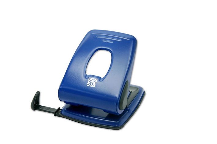 Kovová děrovačka na 40 listů s ergonomickou úchopovou částí. Vhodná pro každodenní používání. Ukazatel středu děrování. Posuvné pravítko pro děrování formátu DIN. Plastové dno základny zabraňuje poškození nábytku.