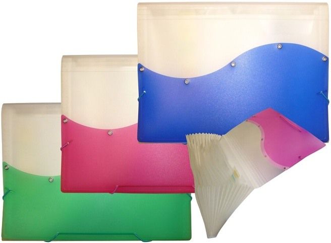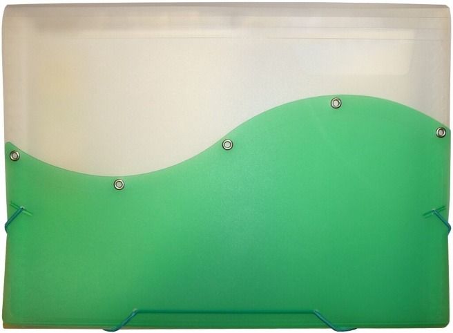 Desky z polypropylenu se třinácti vnitřními kapsami a gumičkou na uzavření.