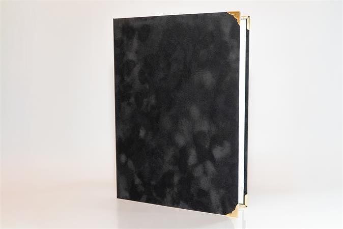 Desky na diplom, černá, A4, plyš, kovové rohy, 5999131712669