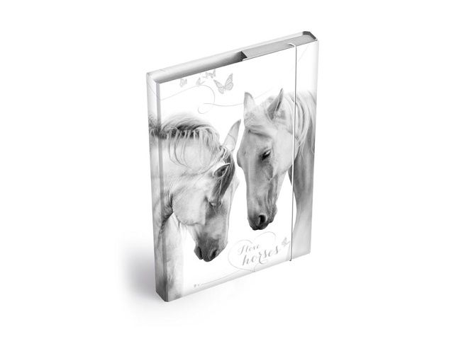 Školní desky na sešity ve velikosti A4 s motivem koně. Nezbytná součást každého školáka - díky školním deskám budou všechny sešity a učebnice pohromadě a neponičené. Tyto desky na sešity jsou opatřeny gumou, která zabraňuje samovolnému otevření. Heft box je vyroben z kvalitního lepenkového kartonu, potaženého laminem. Z tohoto důvodu se dá velice lehce udržovat. Materiál: lepenkový karton s laminem Uvedená cena je za 1 ks.