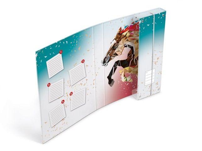 Pořádek v sešitech? Zaručeně! S originálními deskami na sešity získáte nejen stylový doplněk, ale i spolehlivou ochranu školních pomůcek. Design koně složeného z geometrických tvarů v kombinaci s praktickým formátem A5 skvěle padne do školního batohu a zajistí, že sešity i pracovní listy budou vždy pohromadě. Pevný laminovaný karton chrání před ohnutím a nečistotami, zatímco elastická gumička udrží vše bezpečně uvnitř. Motiv: kůň Formát: A5 Materiál: lepenkový karton s laminem Uvedená cena je za 1 ks.
