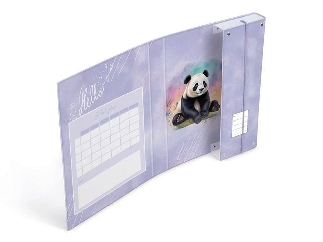 Roztomilost a pořádek v jednom! Desky s motivem pandy ve formátu A5 jsou nejen stylovým doplňkem, ale i spolehlivým ochráncem sešitů a pracovních listů. Odolný lepenkový karton potažený laminem si poradí s pomačkáním i nečistotami, zatímco pevná gumička drží vše pěkně pohromadě. Už žádné zmuchlané rohy ani ztracené papíry – jen dokonale uspořádaný školní batoh! Formát: A5 Motiv: panda Barva: fialová Materiál: lepenkový karton s laminem Uvedená cena je za 1 ks.