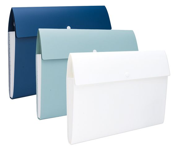 8 přihrádek s registrem- samolepící indexové karty na rozlišení registrů- uzavírání na klopu- formát: A4- mix barev