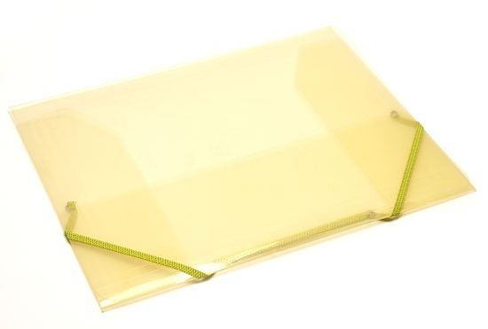 tříklopá složka formátu A4 vyrobena s průsvitného polypropylenu s gumou přes rohy