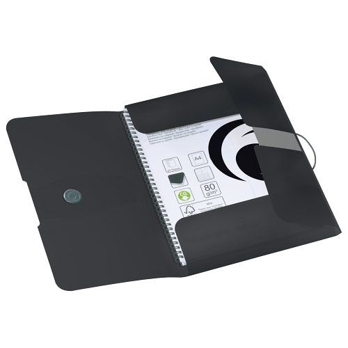 Desky A4 easy orga, zavírání s gumičkou na plastový kroužek, PP, 3 chlopně, kapacita 300 listů, neprůhledné - černé