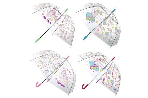 Vystřelovací deštník s motivy jednorožců. Rozměry rozloženého deštníku cca 75 x 75 x 65 cm. Rozměry balení cca 65,5 x 9,5 x 4 cm. Baleno v igelitovém sáčku.