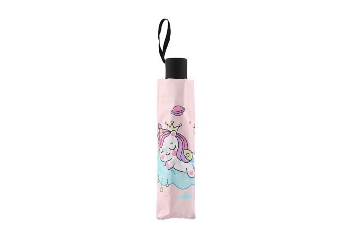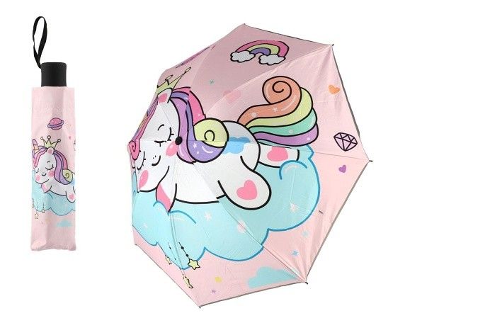 Deštník Jednorožec skládací látka/kov 25cm růžový v sáčku