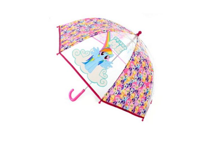 Manuální deštník plastový průhledný o délce 63 cm. Krásný deštník s motivem oblíbených filmových poníků My Little Pony. Jedná se o funkční předmět. Výrobek není hračka. Baleno v sáčku.