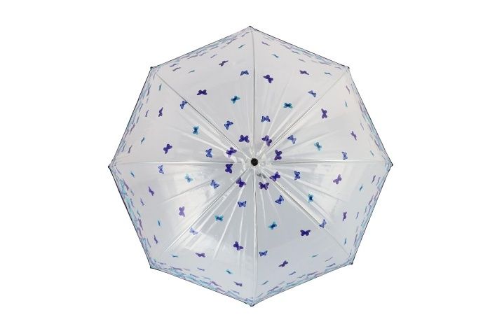 Průhledný deštník s motýlky, o průměru 80 cm. Praktický a stylový doplněk, který rozjasní deštivé dny.