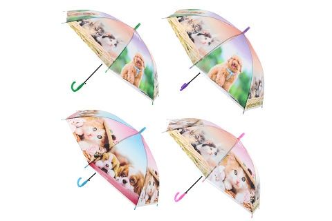 Vystřelovací deštník s motivy psů a koček. Rozměry rozloženého deštníku cca 84 x 84 x 65 cm. Rozměry balení cca 65,5 x8 x 4 cm. Baleno v igelitovém sáčku.