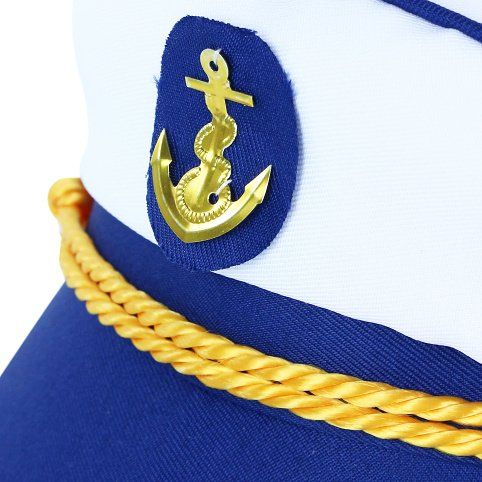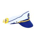 Stylová námořnická čepice pro malé námořníky! Bílá námořní čepice s modrým kšiltem a lemováním je vpředu dekorována zlatou podkovou. Díky této nepřehlédnutelné čepici budeš hvězdou karnevalu a určitě ohromíš všechny své kamarády!