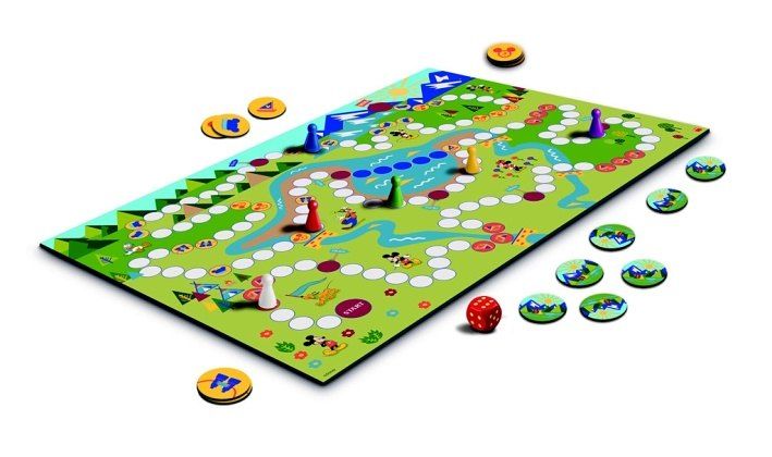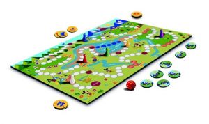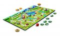 CÍL HRY Cílem hry je jako první přes všechny překážky dorazit na vrcholek hory k cílovému praporku. PŘÍPRAVA HRY Před první hrou opatrně vyloupejte žetony a herní plán rozložte doprostřed stolu. Každý hráč si vezme figurku své barvy a položí ji na start. Žetony vybavení zamíchejte a položte je lícem dolů poblíže herního plánu tak, aby na ně všichni dosáhli. PRŮBĚH HRY Hru začíná nejmladší hráč. Hodí kostkou a posune svoji figurku o příslušný počet bodů. Pokud hráč ukončí svůj tah na barevném políčku, vykoná příslušnou akci popsanou níže. Na jednom políčku může být více figurek. Hodí-li hráč šestku, hází ještě jednou. Ukončí-li hráč svůj tah po šestce na barevném políčku, vykoná příslušnou akci a pak teprve hází znovu.odné s barvou období) Klid, nic se neděje. Ve hře pokračuje další hráč, který je na řadě. Akční políčka Červené políčko se stanem: Je čas doplnit zásoby vybavení, které se v horách bude hodit. Hráč si náhodně vezme jeden žeton vybavení a položí ho před sebe lícem vzhůru. Pokud už žádné vybavení není dostupné, nic si nebere. Hnědé políčko s ukazatelem: Ukazatel pomůže najít správnou cestu. Hráč hází ještě jednou. Pokud na pole vstoupí po šestce, hází ještě dvakrát. Žluté políčko s loďkou: Vítr do plachet a hurá na vodu. Pokud hráč, který prochází přes toto políčko vlastní žeton s loďkou, může si zkrátit cestu přes jezero po modrých políčkách. Pokud žeton nevlastní, musí pokračovat po bílých políčkách delší cestou okolo jezera. Žluté políčko s dalekohledem: Vidět do dálky se hodí, urychlí to cestu. Pokud hráč má žeton dalekohledu, odevzdá ho zpět do žetonů vybavení a v dalším tahu pokračuje v cestě. Pokud tento žeton nemá, 1 kolo nehraje. Žluté políčko s kompasem: Když znáte správný směr, tak se neztratíte. Pokud hráč má žeton s kompasem, odevzdá ho zpět do žetonů vybavení a v dalším tahu pokračuje v cestě. Pokud tento žeton nemá, hledá cestu a 1 kolo nehraje. Žluté políčko s čepicí: V čepici je v horách teplo. Pokud hráč má žeton s čepicí, odevzdá ho zpět do žetonů vybavení a v dalším tahu pokračuje v cestě. Pokud tento žeton nemá, musí se zahřát cvičením a 1 kolo nehraje. KONEC HRY Vítězem se stává první hráč, který dorazil do cílového pole s praporkem. Ostatní hráči mohou dohrát, aby se určilo zbylé pořadí. Obsahuje: • 1 herní plán • 21 žetonů vybavení • 6 figurek • 1 hrací kostka • 1 pravidla