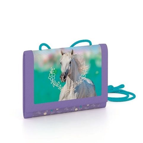 Praktická textilní peněženka na suchý zip. Vzadu je uzavíratelná kapsička na drobné, uvnitř jedna přihrádka na bankovky, šest kapsiček na karty a jedna průhledná kapsa.