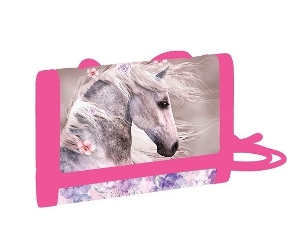 Praktická textilní peněženka na suchý zip. Vzadu je uzavíratelná kapsička na drobné, uvnitř jedna přihrádka na bankovky, šest kapsiček na karty a jedna průhledná kapsa.