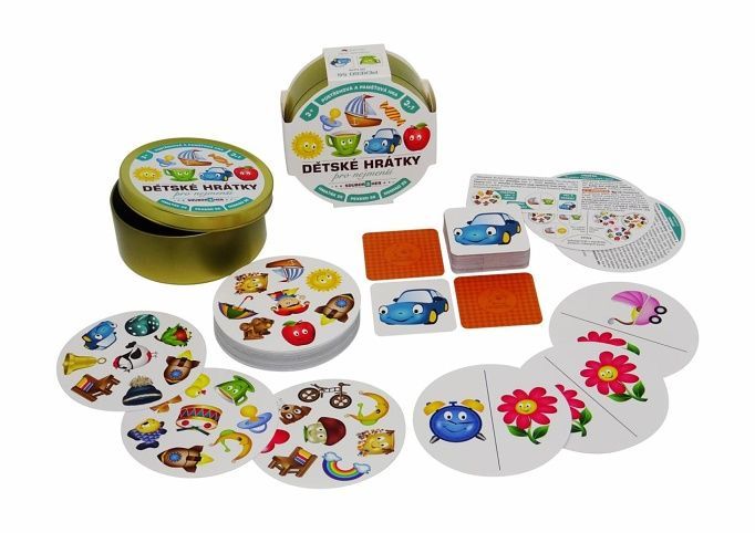 Zábavná karetní postřehová hra balená v malé plechové krabičce. To jsou Dětské hrátky, které obsahují tři zábavné karetní hry: Hmaťáka, Domino a Pexeso. Děti si zábavnou formou zlepšují postřeh a paměť. Jednoduchá pravidla a krásně malované obrázky.