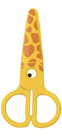 Dětské veselé plastové nůžky vhodné pro nejmenší děti. Široký úchop pro snadné držení. Střihají až 6 listů tenkého papíru. Dodáváno na závěsném blistru s motivem žirafy.