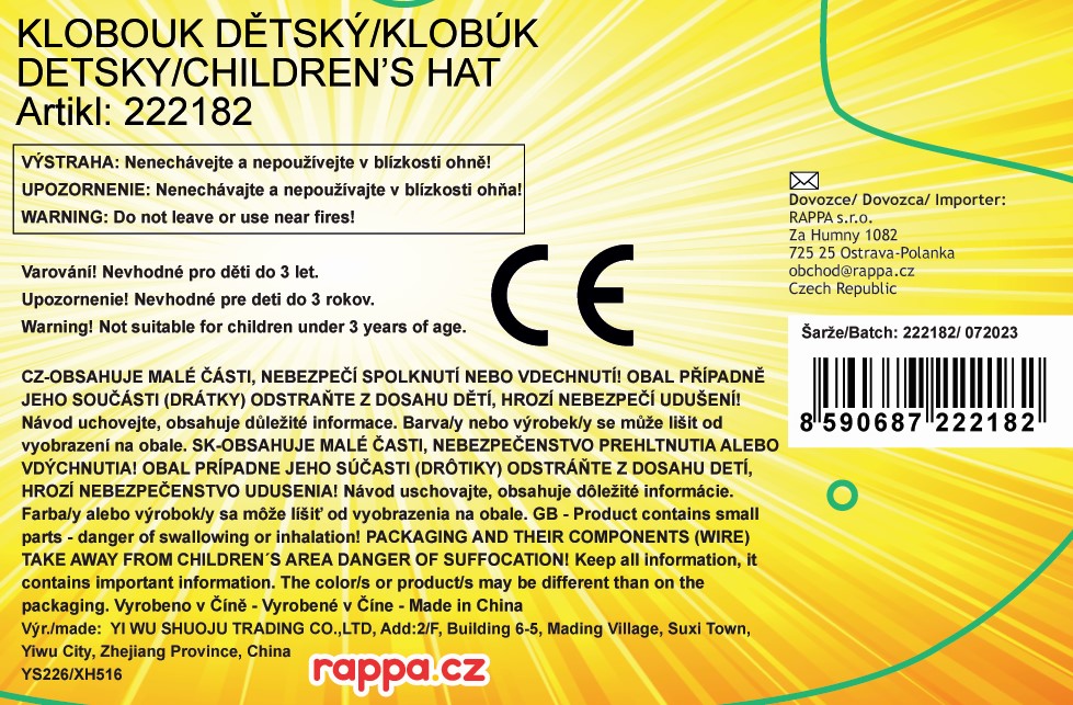 Kouzelný klobouk černé barvy zdoben barevnými magickými lebkami. Tento klobouk je ideální na čarodějnickou nebo halloweenskou oslavu.