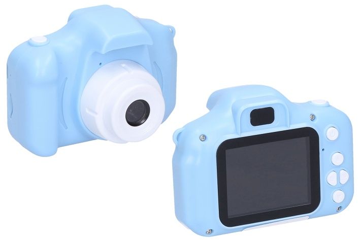 Dětský digitální fotoaparát modrý - foto 48Mpx, video Full HD. Rozměry 8,3x5x6 cm. Rozlišení fotografií 48 megapixelů, videa Full HD (1920x1080). Časovač, vložení času, digitální zoom, různé efekty (rámečky, vložené animace, deformace, filtry) fotografií, hry, mp3 přehrávač, 2,0 palcový displej. Vestavěná 400mAh Li-ion baterie, USB kabel a popruh součástí. Formát fotografií jpg, videa avi. Provoz 80-150 min. Kompatibilní s micro SD kartami - max. 32GB. Paměťová karta není součástí.