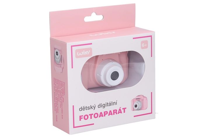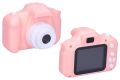 Dětský digitální fotoaparát růžový - foto 48Mpx, video Full HD. Rozměry 8,3x5x6 cm. Rozlišení fotografií 48 megapixelů, videa Full HD (1920x1080). Selfie kamera, časovač, vložení času, digitální zoom, různé efekty (rámečky, vložené animace, deformace, filtry) fotografií, hry, mp3 přehrávač, 2,0 palcový displej. Vestavěná 400mAh Li-ion baterie, USB kabel a popruh součástí. Formát fotografií jpg, videa avi. Provoz 80-150 min. Kompatibilní s micro SD kartami - max. 32GB. Paměťová karta není součástí.