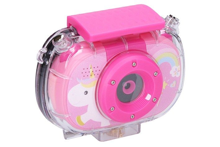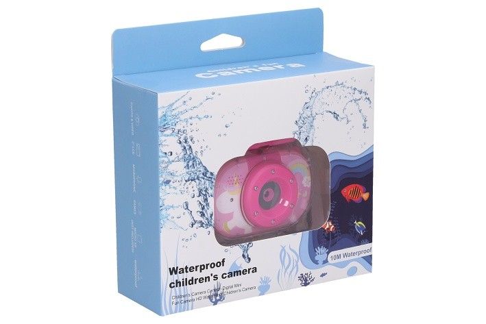 Dětský digitální fotoaparát s vodotěsným pouzdrem - foto 20Mpx, video Full HD. Rozměry 8x2,5x5,5 cm. Výklopný objektiv - slouží i jako selfie kamera. Rozlišení fotografií 20 megapixelů, videa Full HD (1920x1080). Kamera přední/selfie, časovač, sériové snímání, digitální 10x zoom, vložení času, různé efekty (rámečky, vložené animace, filtry) fotografií, hry, mp3 přehrávač, 2,0 palcový displej. Vestavěná Li-ion baterie, USB kabel, popruh a vodotěsné pouzdro součástí. Formát fotografií jpg, videa avi. Vodotěsné pouzdro určeno maximálně do hloubky 10 m. Provoz 100 min. Kompatibilní s micro SD kartami - max. 32GB. Paměťová karta není součástí.