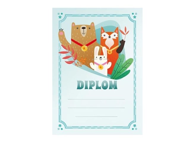 Dětský diplom – zábavné ocenění Potěšte malé šampiony originálním diplomem, který jim vykouzlí úsměv na tváři! Barevný dětský diplom ve formátu A4 s veselými ilustracemi medvěda, lišky a králíčka je skvělým způsobem, jak ocenit výkon, snahu nebo účast v soutěži, školce či dětském kolektivu. Zvířecí kamarádi s medailemi na krku dodávají diplomu slavnostní a přívětivý vzhled, který děti motivuje a potěší. Volné řádky na doplnění jména, ocenění i data umožňují snadné přizpůsobení pro jakoukoli příležitost – od sportovních soutěží přes výtvarné aktivity až po tábory a školní akce. Formát: A4 Gramáž: 300 g Motiv: lesní zvířátka Druh papíru: křídový, matný Uvedená cena je za 1 ks.