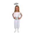 Proměň se v anděla díky tomuto krásnému kostýmu! Okouzlující šaty bílé barvy s průsvitnými rukávy, jsou zdobeny sříbrným lemováním a širokým páskem. Celkový dojem kostýmu dotváří čelenka se stříbrnou svatozáří. Tento kostým ve velikosti S je určen pro holčičky ve věkovém rozmezí 3-6 let (105-116 cm).