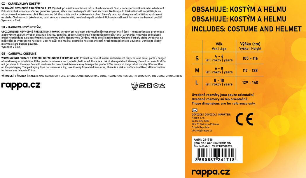 Senzační karnevalový kostým astronauta. Kostým ve velikosti S je určen pro chlapečky ve věkovém rozmezí 4-6 let (110-116 cm). Balení obsahuje bílou kombinézu se stříbrnými doplňky a látkovou helmu.