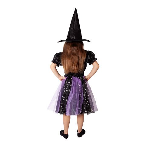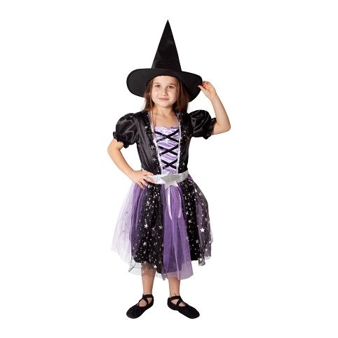 Parádní karnevalový kostým s motivem čarodějnice! Kostým fialovo-černé barvy ve velikosti S je určen pro holčičky ve věkovém rozmezí 3-6 let (105-116 cm). Šaty jsou zdobené potiskem stříbrných hvězdiček. Součástí balení je perfektně sladěný klobouk. Staň se hvězdou karnevalového nebo Halloweenského večírku! Nejen letos je potřeba myslet EKO-nomicky i EKO-logicky! EKO-balení je vhodné zejména pro e-shopy kde zákazník nakupuje dle fotografie a není třeba velkého balení s věšákem. EKO-logicky – na balení bylo použito méně plastu a dalších materiálů. Jedná se o malý transparentní obal s fotografií. EKO-nomicky –EKO-obal zabere jen polovinu místa – šetřete skladová místa s námi!