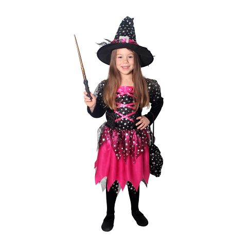 Dětský kostým čarodějnice černo-růžová s hvězdičkami (M)