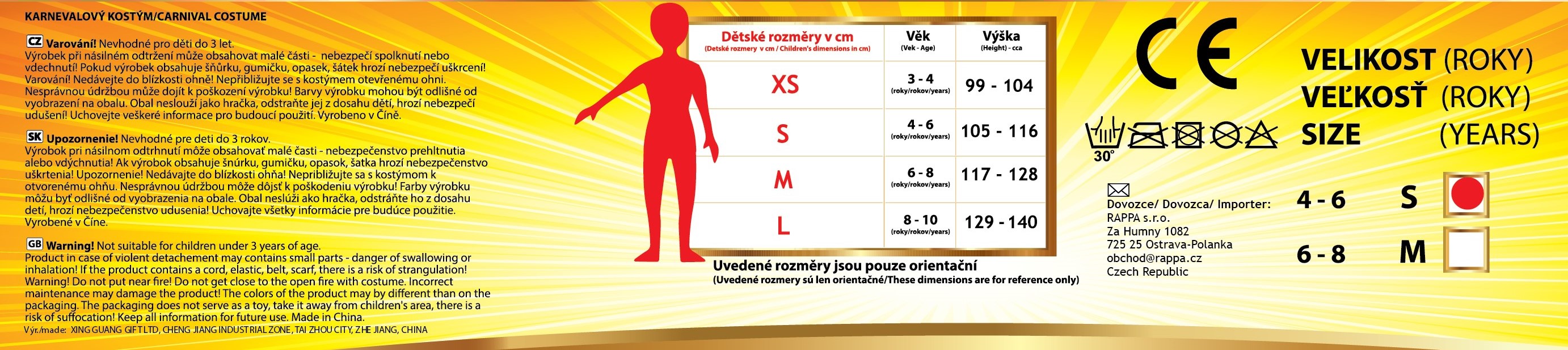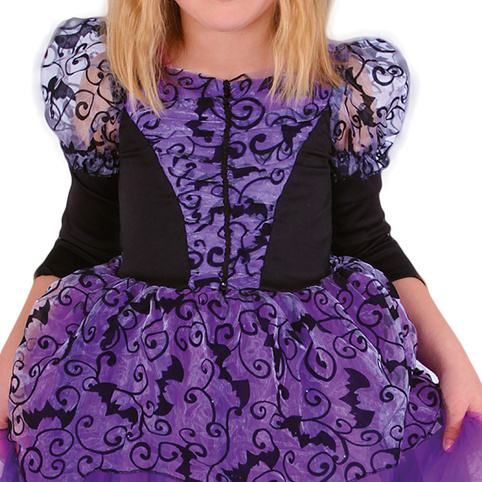 Nádherný kostým pro všechny malé čarodějnice! Kostýmek o velikosti S je určen pro holčičky ve věkovém rozmezí 3-5 let (104-113 cm). Fialové šaty s nadýchanou sukní a tříčtvrtečním rukávem jsou zdobeny černým netopýřím vzorem. Součástí balení je také perfektně sladěný, stejně zdobený klobouk. Nejen letos je potřeba myslet EKO-nomicky i EKO-logicky! EKO-balení je vhodné zejména pro e-shopy kde zákazník nakupuje dle fotografie a není třeba velkého balení s věšákem. EKO-logicky – na balení bylo použito méně plastu a dalších materiálů. Jedná se o malý transparentní obal s fotografií. EKO-nomicky –EKO-obal zabere jen polovinu místa – šetřete skladová místa s námi!