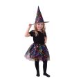 Magický kostýmek pro malé čarodějnice v černé barvě, zdobený barevným dekorem hvězdiček. Kostým je určen pro holčičky ve věkovém rozmezí 3-7 let. Balení obsahuje nadýchanou sukničku a k tomu perfektně sladěný klobouk. Délka sukýnky je cca 30 cm. Sukně je v pase na gumičku. Vhodný i na oslavu Halloweenu.